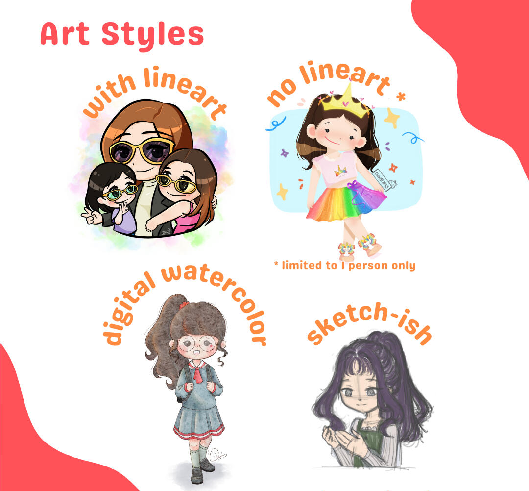 π±Client may request for major revisions such as change of pose, details, etc. but should not deviate from original requirements.